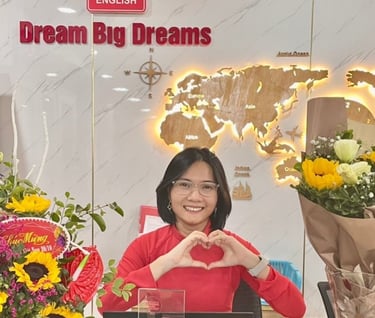 Cô Tâm đã có 5 năm kinh nghiệm giảng dạy, đồng hành cùng các bạn nhỏ lứa tuổi từ 4-15 trong hành trình chinh phục tiếng Anh. Với sự nỗ lực của các bạn nhỏ, tin tưởng của phụ huynh và tận tâm của mình, cô Tâm và các bạn nhỏ đã đạt được nhiều giải thưởng uy tín như "Tài Năng Anh Ngữ", "Siêu Sao Nhí", "Thiếu nhi Việt Nam-Vươn ra thế giới" và nhiều cuộc thi khác. Thank you for helping me shine !