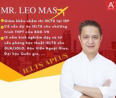 Tại Aplus, thầy LEO là người trực tiếp hướng dẫn, soạn thảo bài giảng chương trình IELTS, cố vấn, giúp đỡ giáo viên và học sinh các kiến thức, kĩ năng bài bản theo tiêu chuẩn quốc tế.